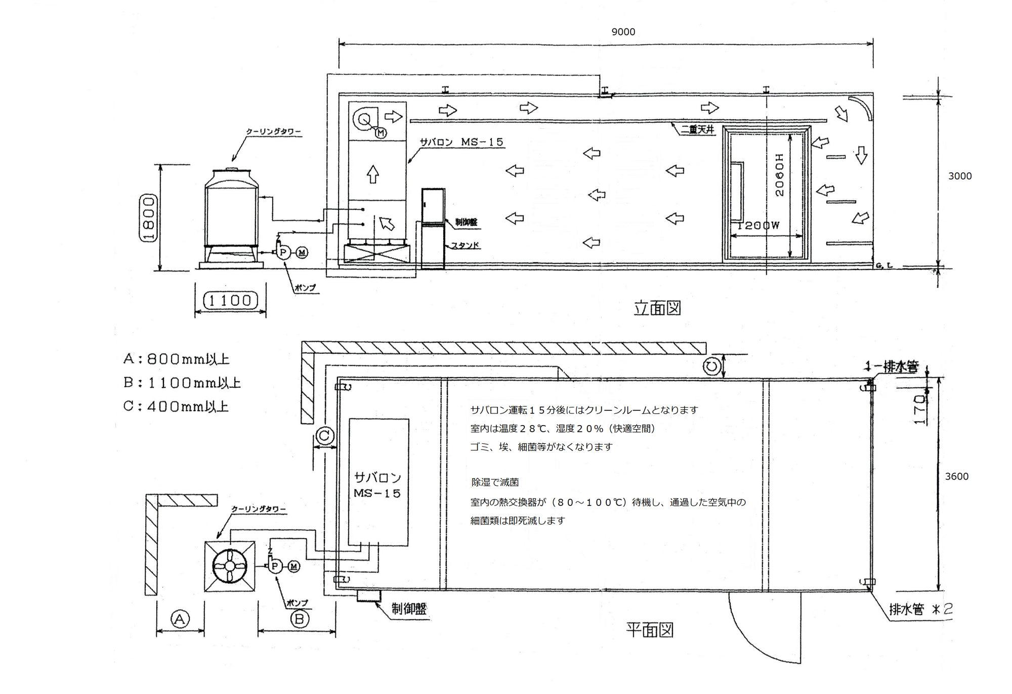 「サバロン除湿空調機」室外機は水冷式クーリングタワーであり環境問題温暖化には全く問題ありません。